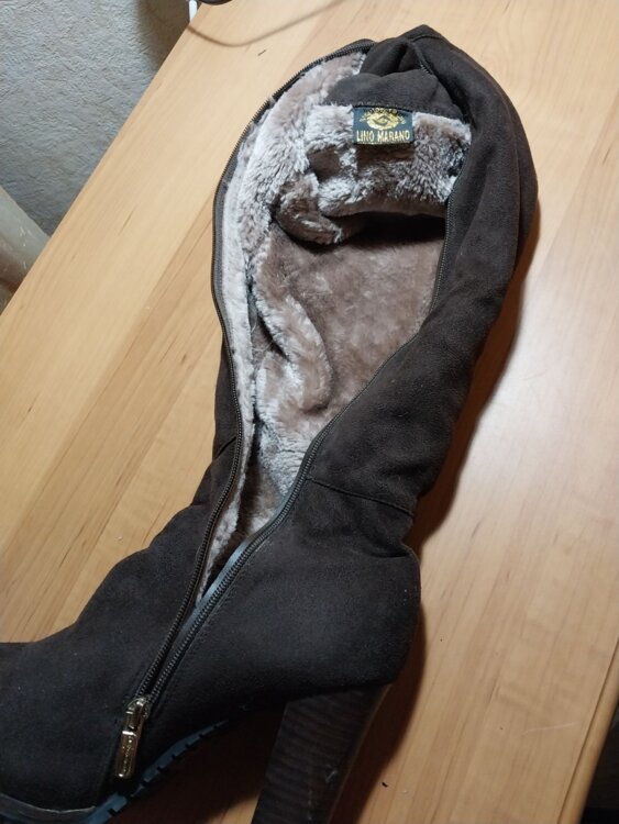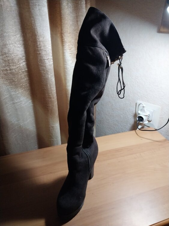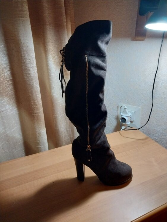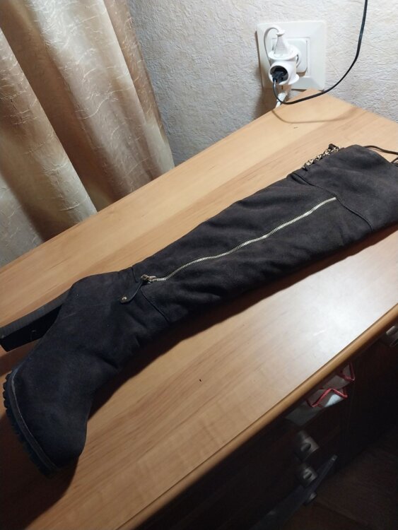 1. Сапоги женские, высокие до колен, коричневые, замшевые, на меху, р. 38, цена - 300 лей.
