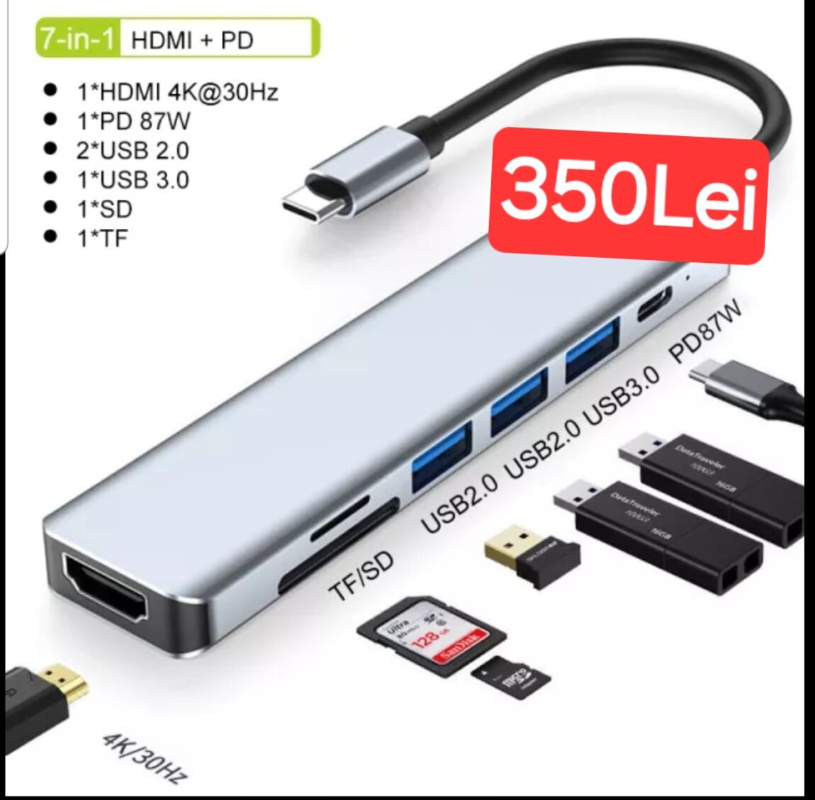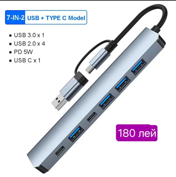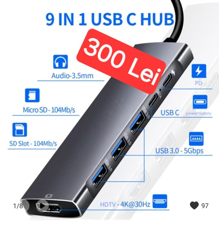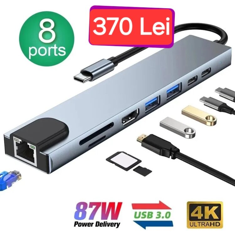 1.Adapter Type C 8 ports - 370 lei