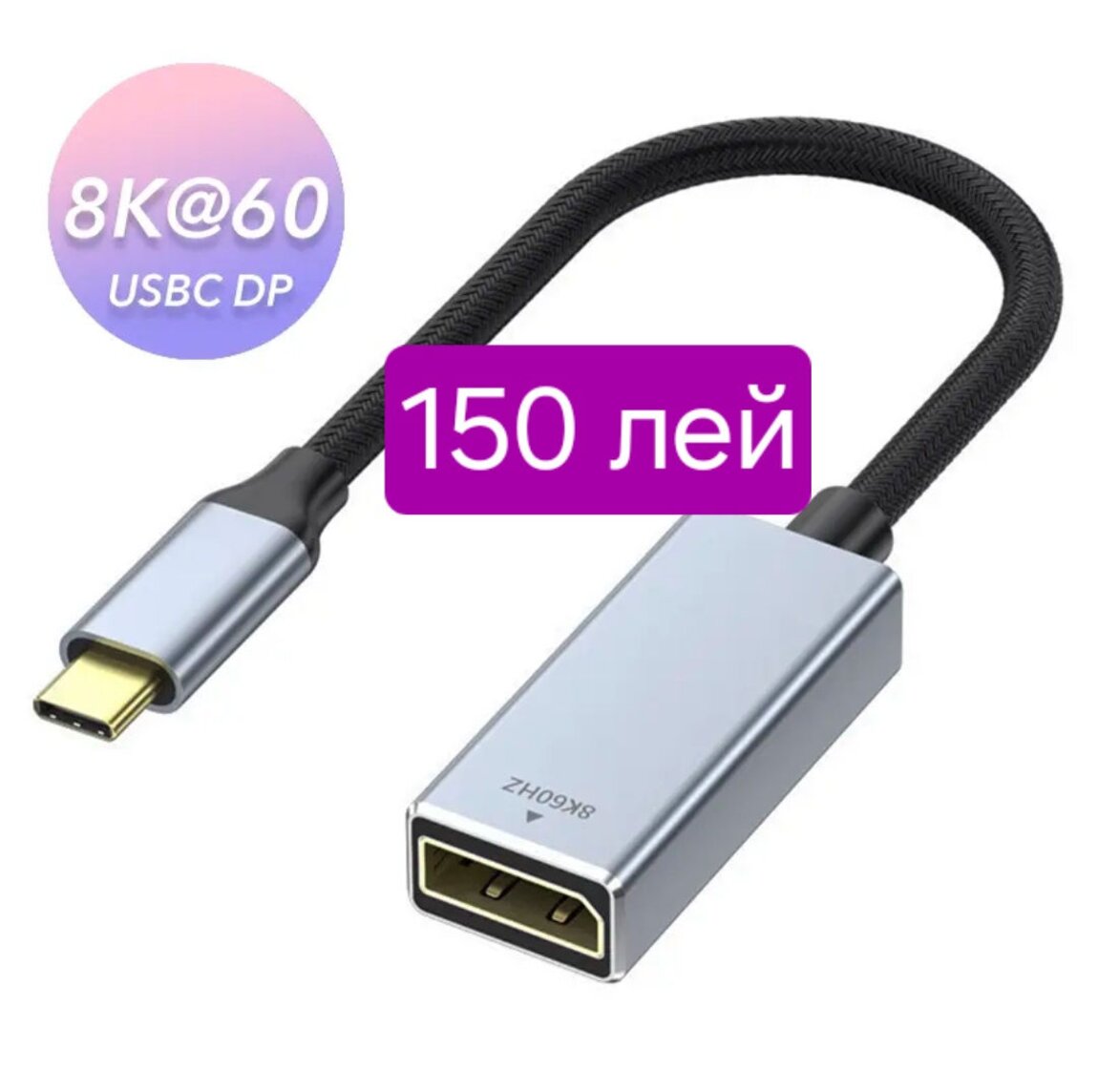 8.***Адаптер-переходник USB 3.1 Тип C (TYPE C) к HDMI Кабель-адаптер (Thunderbolt 3) 4k @ 30 Гц -150 lei