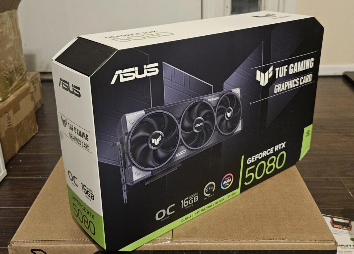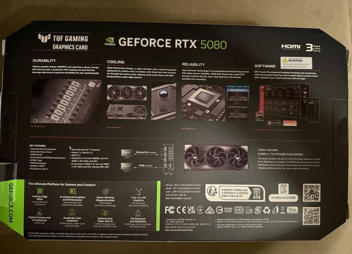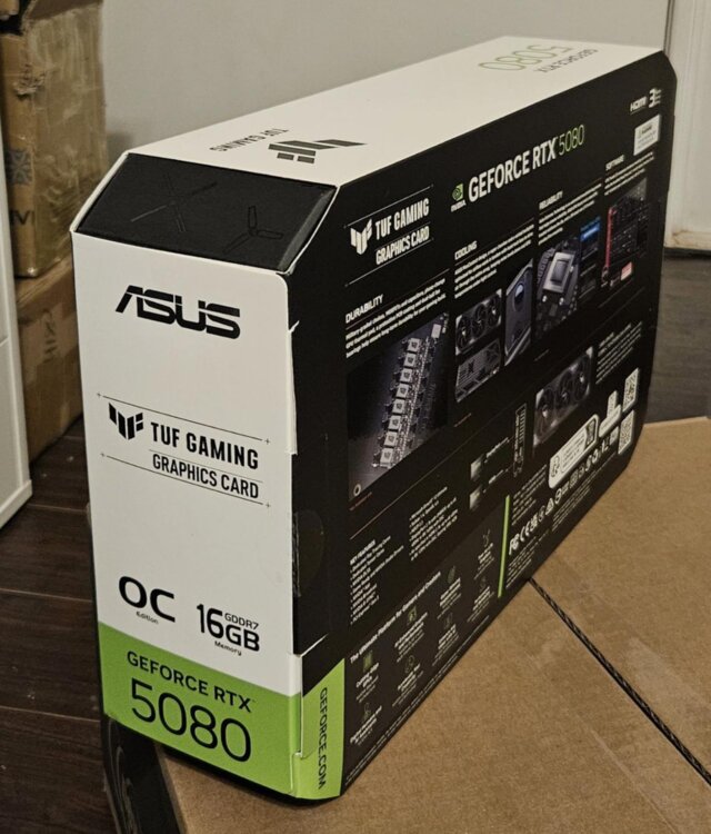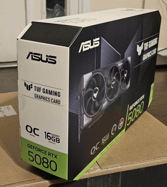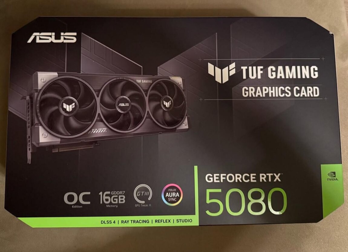 Vând o placă grafică ASUS TUF Gaming GeForce RTX 5080 16GB GDDR7 OC Edition NOU-NOUȚĂ, în ambalajul original, cu 3 ani garanție de la producător.