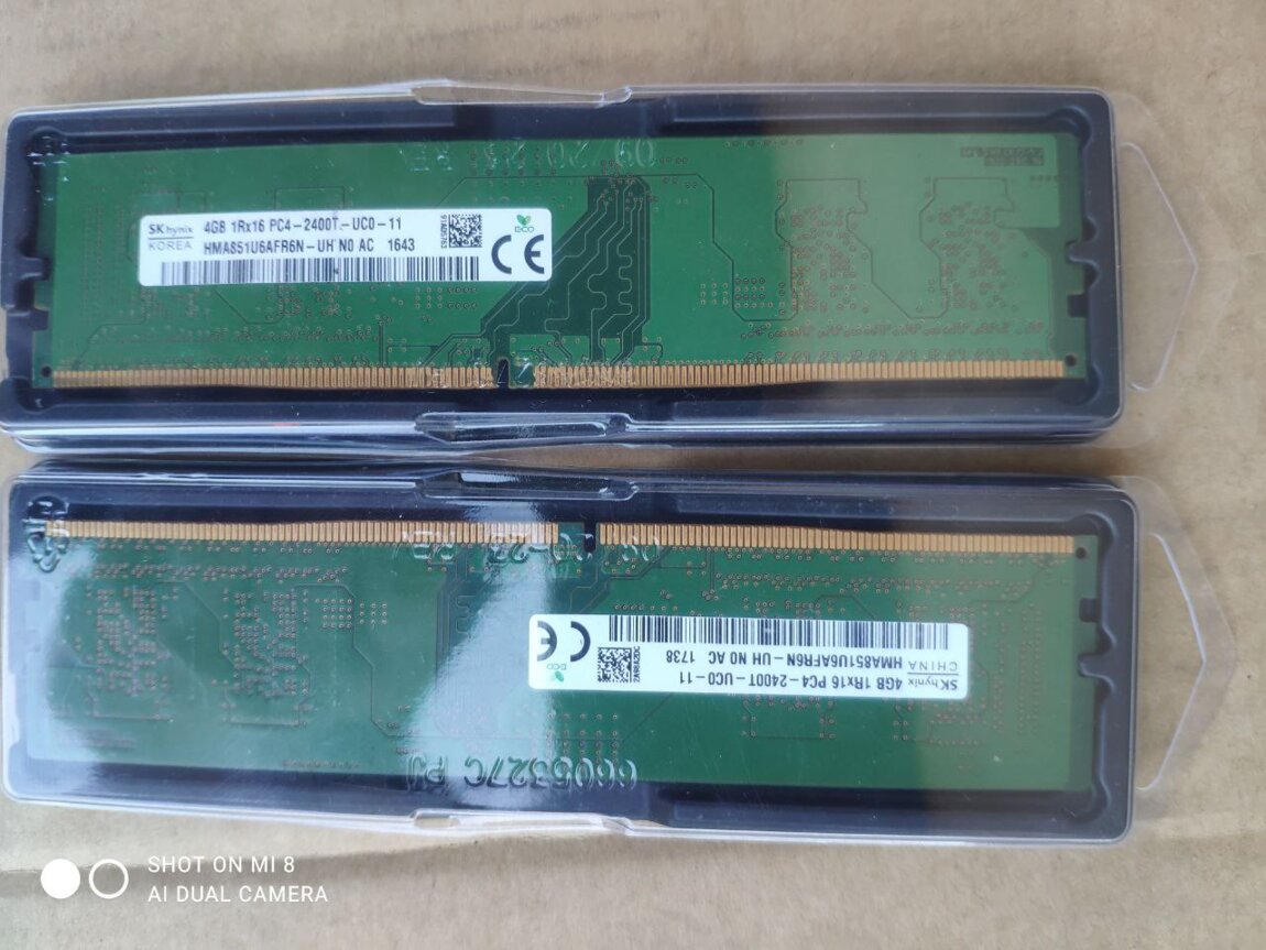 Оперативная память DDR4 4GB Hynix Original 2400MHz в упаковке 300 руб за обе 2шт. по 4 гб= 8 гб.