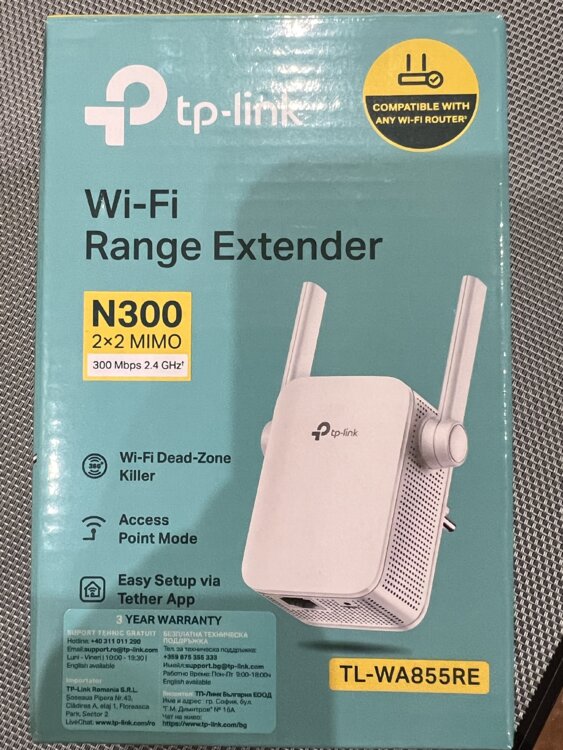 Продам мощный и компактный усилитель Wi-Fi сигнала TP-Link TL-WA855RE. Состояние идеальное, практически новое — использовали всего месяц, сейчас лежит без дела.