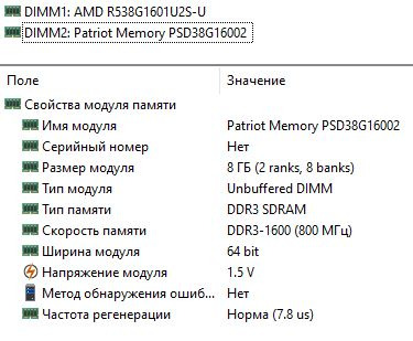 ОЗУ 2x8GB DDR3-1600