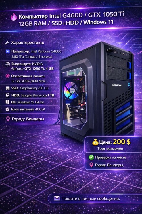 • Процессор: Intel Pentium G4600 @ 3.60 GHz (2 ядра / 4 потока)