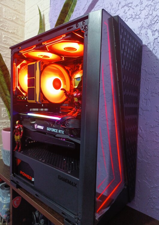 Видеокарта: MSI RTX 3070Ti GamingX — флагманская карта с 8 ГБ видеопамяти. Мощнейший чип, который тянет ЛЮБЫЕ игры в 2K (1440p) на максимальных настройках и отлично показывает себя в 4K!