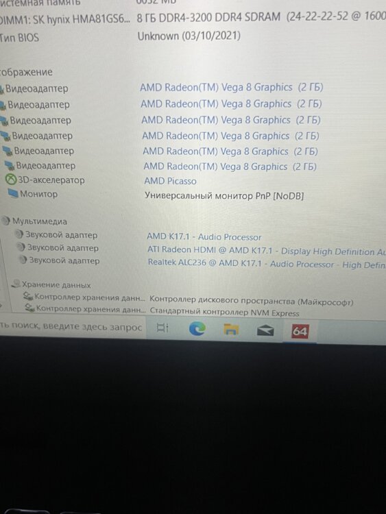>Видео карта: Vega 8 -2 Gb
