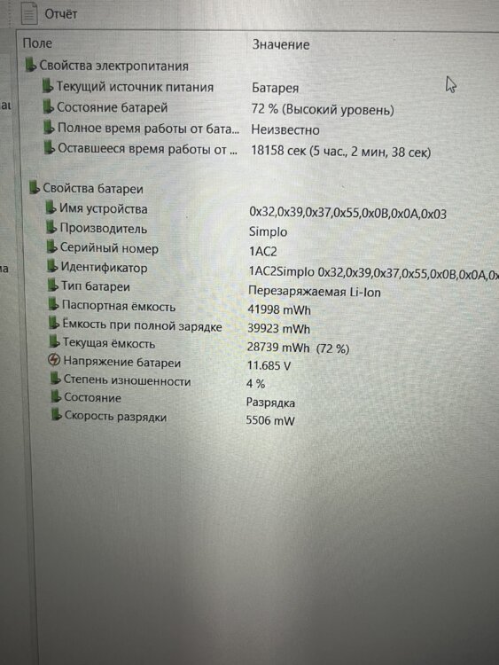>Батарея: держит 5 часов (4% износа)