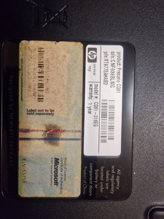HP Compaq Presario CQ61 (Model: CQ61-316EG)