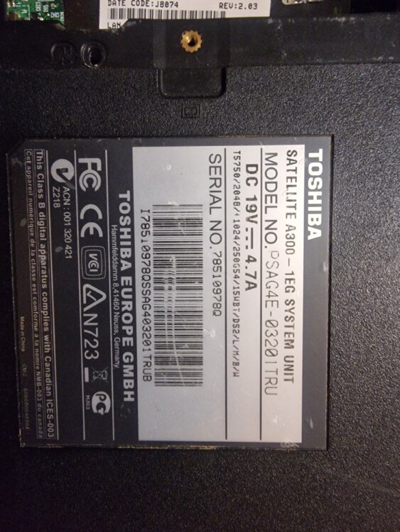 Toshiba Satellite A300-1EG (Model: PSAG4E-03201TRU)