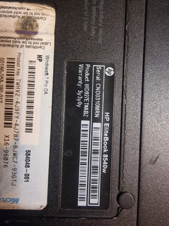 HP EliteBook 8540w (Model: WD927ET#ABZ)