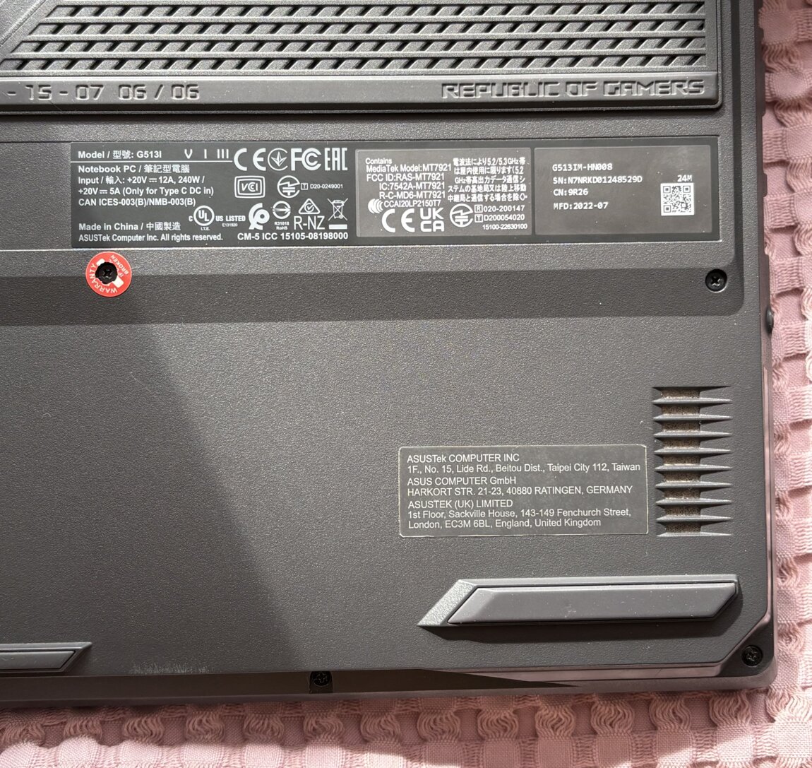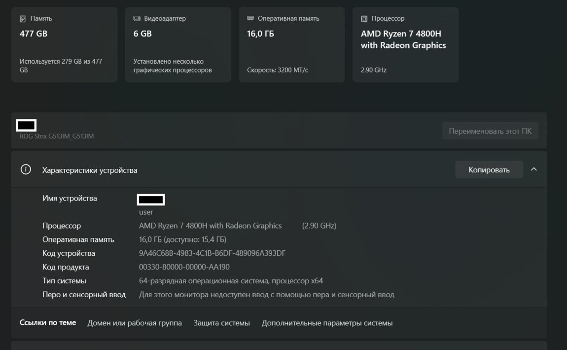 МодельAsus Rog Strix G15(G513IM)
