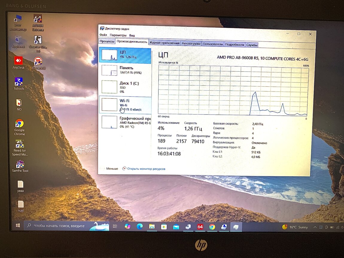 Процессор: AMD Pro A8 8600b 2.4-3.3 Ghz