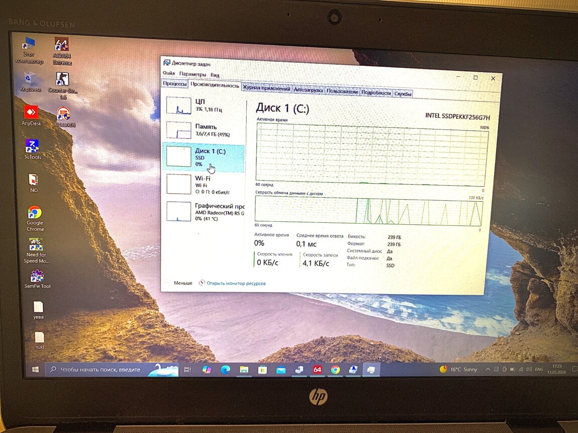 Объем жесткого диска256 Гб