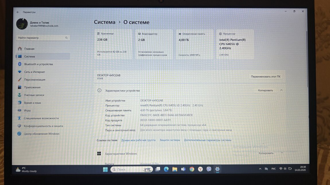 Объем жесткого диска238 Гб