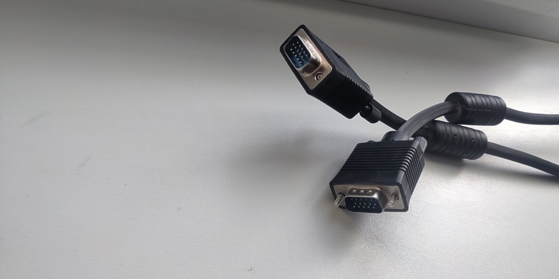 Кабель VGA (черного цвета) новый, цена 80 рублей, длина 1.75 м.