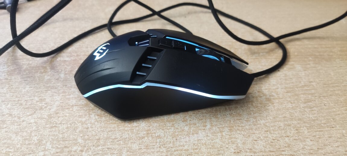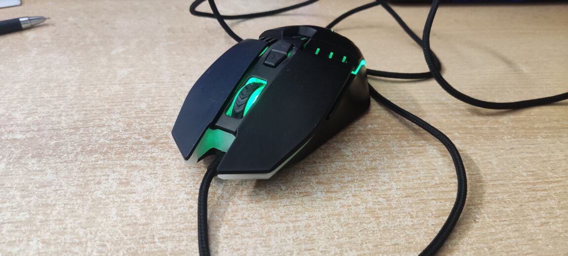 - игровая мышь 7 кн., включая кнопку «Тройной клик», кнопку смены разрешения, 2 программируемых кнопки на левой боковой панели и колёсико-кнопку.