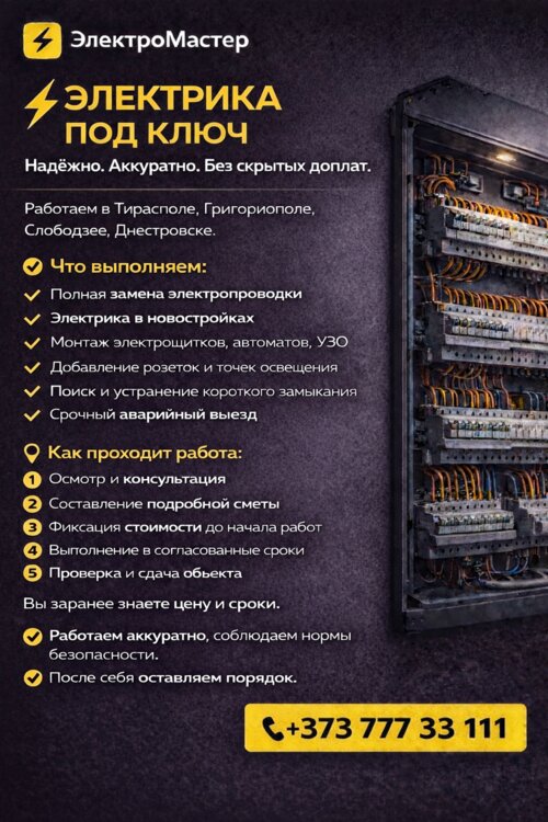 Позвоните или напишите прямо сейчас — подскажем решение и рассчитаем стоимость https://electricpmr.vercel.app/.