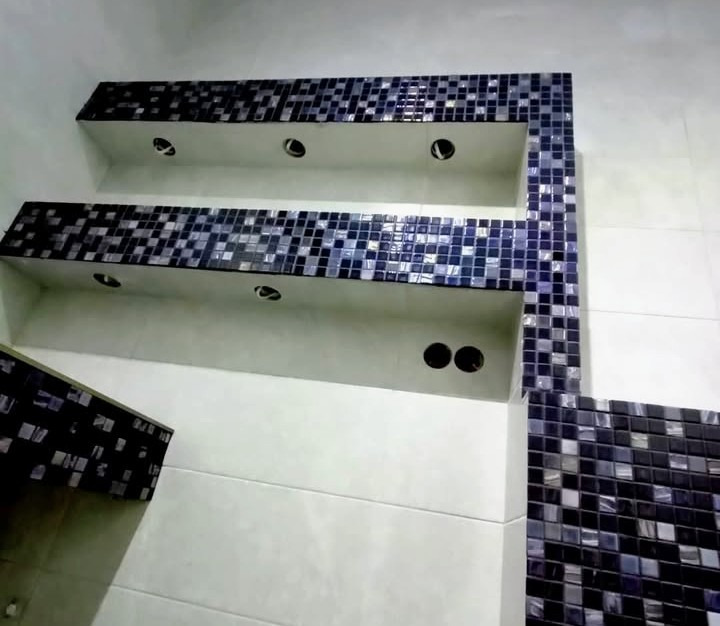 Плиточные работы любой сложности и любой формат, мазайка, запил 45°, Полочки из плитки, душевой подон из плитки.
