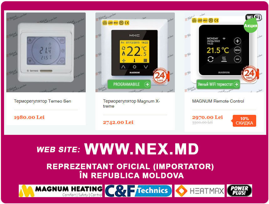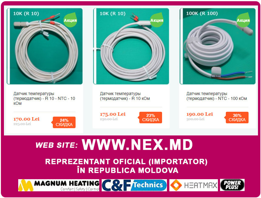 - Для экономного потребления нужен терморегулятор, большой выбор моделей от ручного управления до программируемых, Простая модель со скидкой 45% всего за 460 лей. Вся линейка регуляторов с датчиком температуры - https://nex.md/product/thermostat