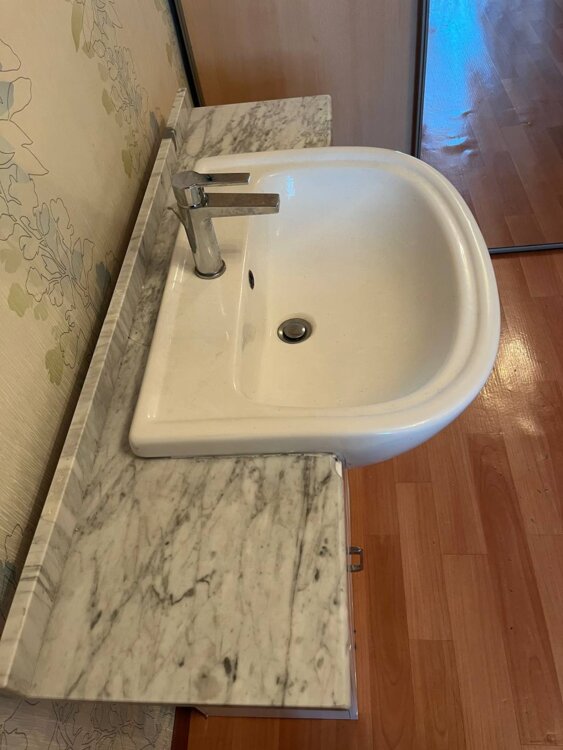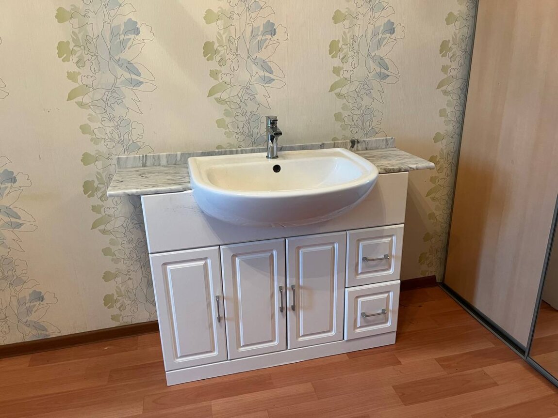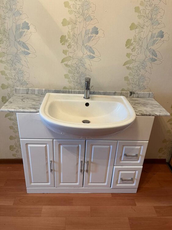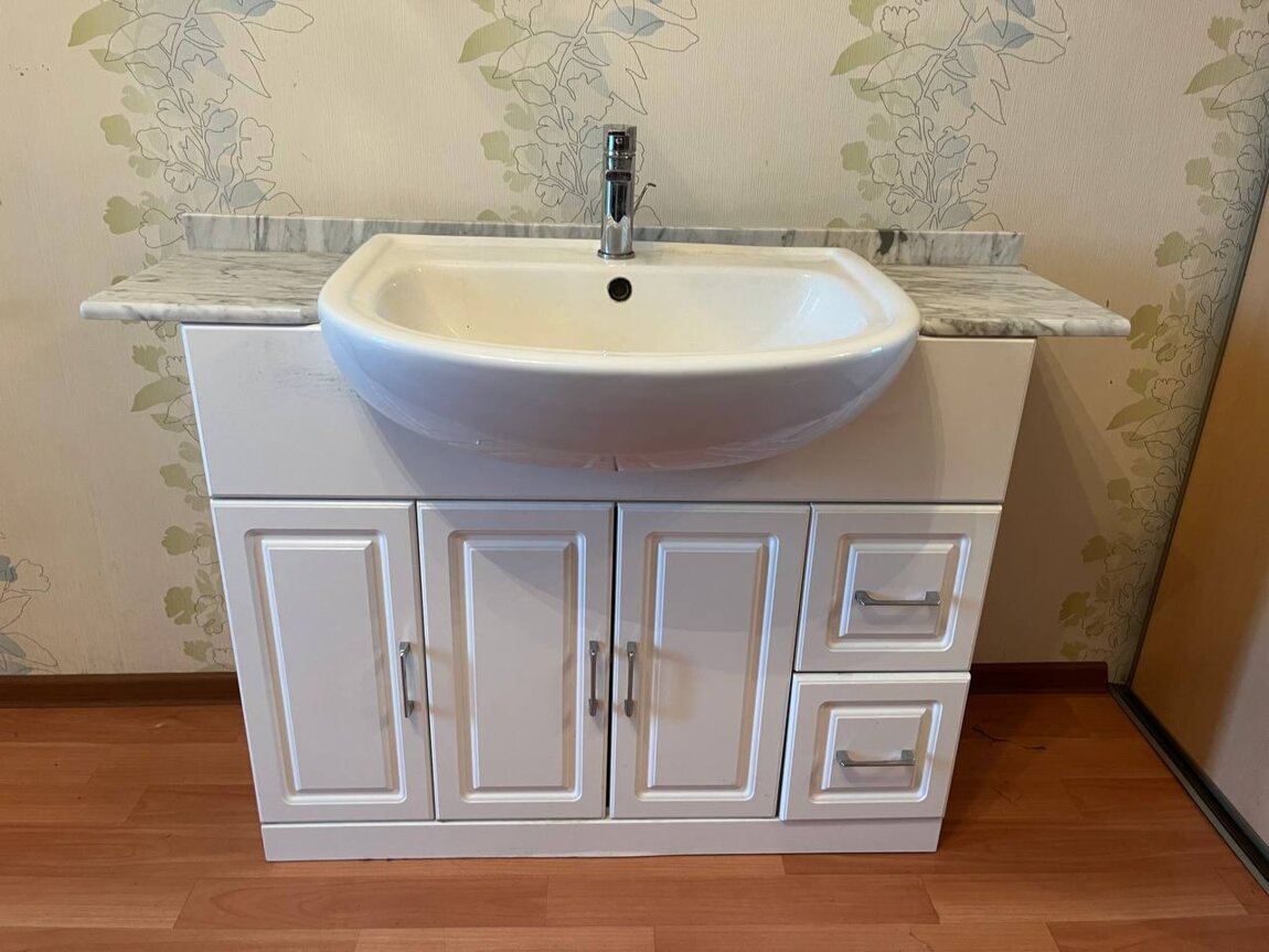 Тумба с мойкой и мраморной столешницей 120 см ширина смеситель, сифон в комплекте.