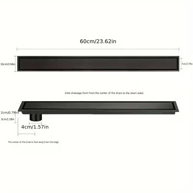 Черный невидимый длинный напольный слив из прочной нержавеющей стали с высоким дренажным потенциалом, предотвращающим появление запахов, подходит для отелей, душевых, балконов и многого другого - доступен в различных спецификациях