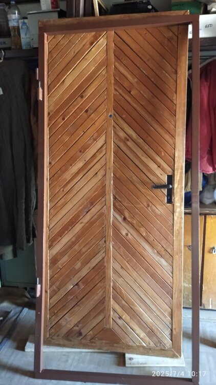 Продаю металлическую дверь c коробкой уголок 40мм. по периметру уголок 30 мм, облицована деревом