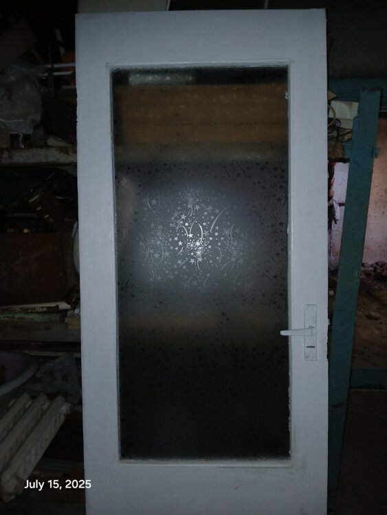 Межкомнатная дверь и коробка к ней. Стекло с красивым узором.