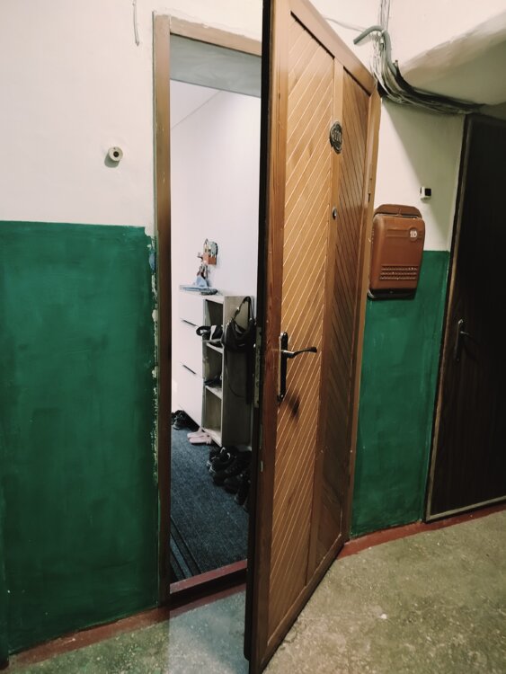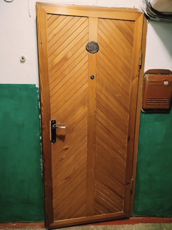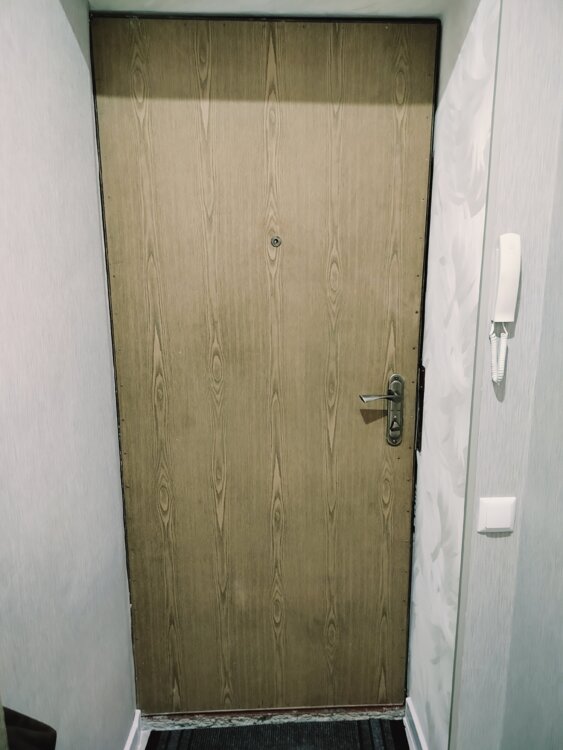 Железная дверь из толстого металла, отделана деревом. размер 85/2м
