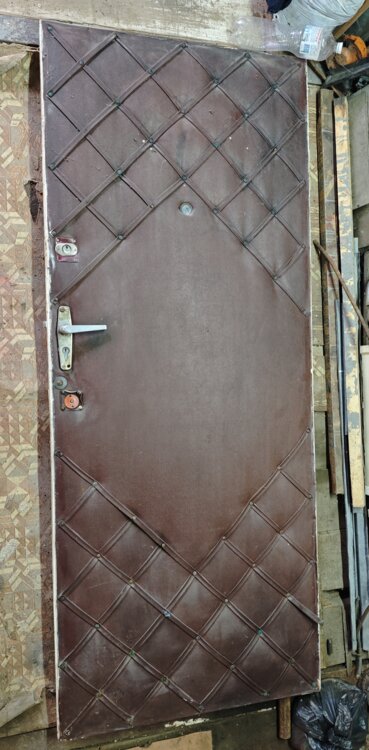 Продаётся прочная деревянная дверь, обшитая декоративным кожзаменителем с внутренним мягким слоем (классический «стёганый» рисунок). Подойдёт для установки в частный дом, гараж, подсобное помещение или дачу.
