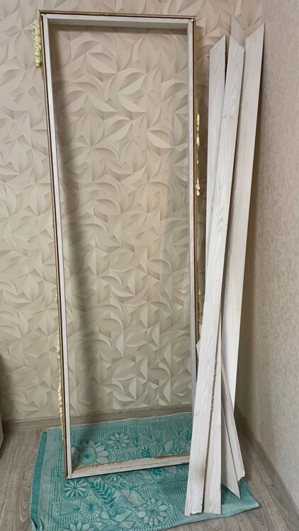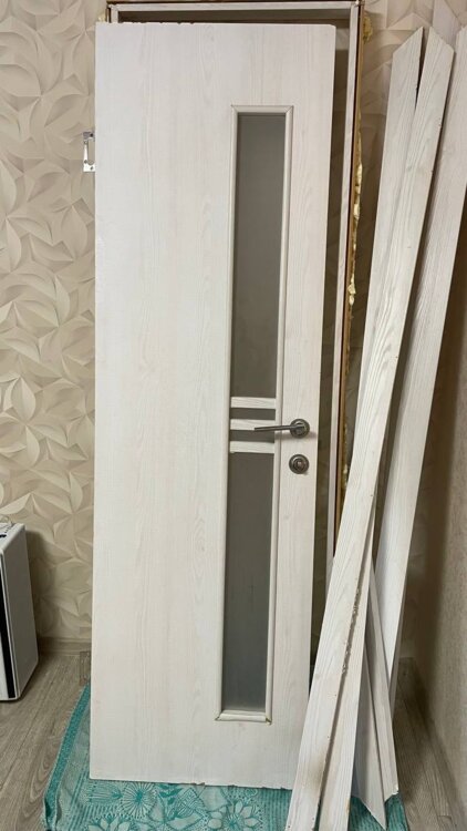 Продам межкомнатную дверь б/у с коробкой, наличниками и фурнитурой, размер полотна 80х200, цвет - белое дерево.
