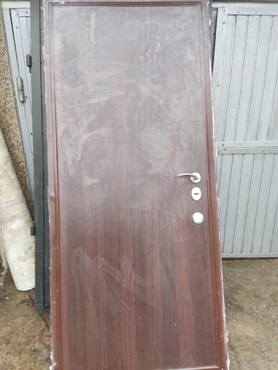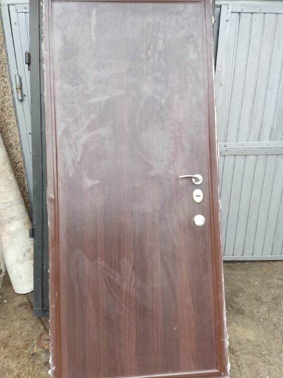 Дверь железная утеплённая часть обшита фанерой без замка