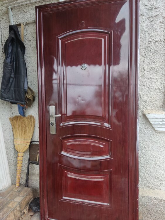 Дверь железная 209 см на 93 см по наличнику и 205 см на 85 см по коробке цена 1350 руб..
