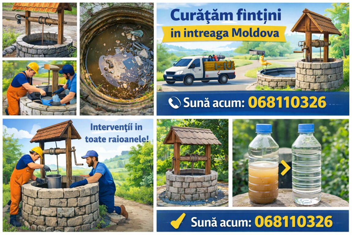 Oferim servicii de curățare, dezinfectare și întreținere a fântânilor. Experiență și echipament profesional.