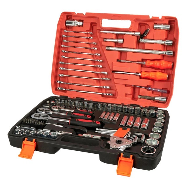 Набор инструментов на 121 предмет — это универсальное решение для ремонта, строительства и монтажных работ. В комплекте есть все: от гаечных ключей и отверток до трещоток, головок и бит. Инструменты изготовлены из высокопрочной хромированной стали, что обеспечивает долговечность, устойчивость к коррозии и надежность даже при интенсивном использовании.