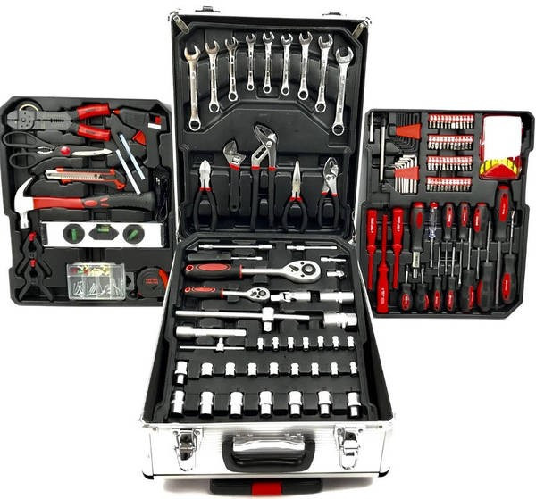Набор инструментов является хорошим помощником в каждом доме, поставляется в алюминиевом кейсе в виде чемодана, благодаря чему его можно удобно хранить в доме или гараже.