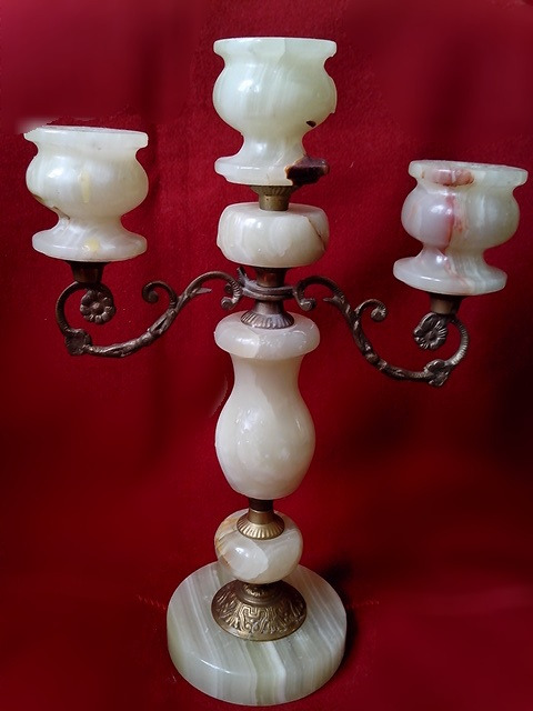 Продам красивый элегантный подсвечник из натурального камня оникса и бронзы. 1988г