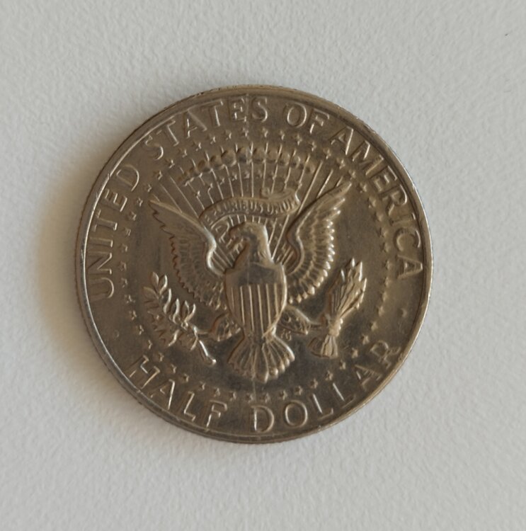 Изображён Государственный герб США (белоголовый орёл со щитом) в кольце из звезд. Надписи: UNITED STATES OF AMERICA / E PLURIBUS UNUM / HALF DOLLAR.
