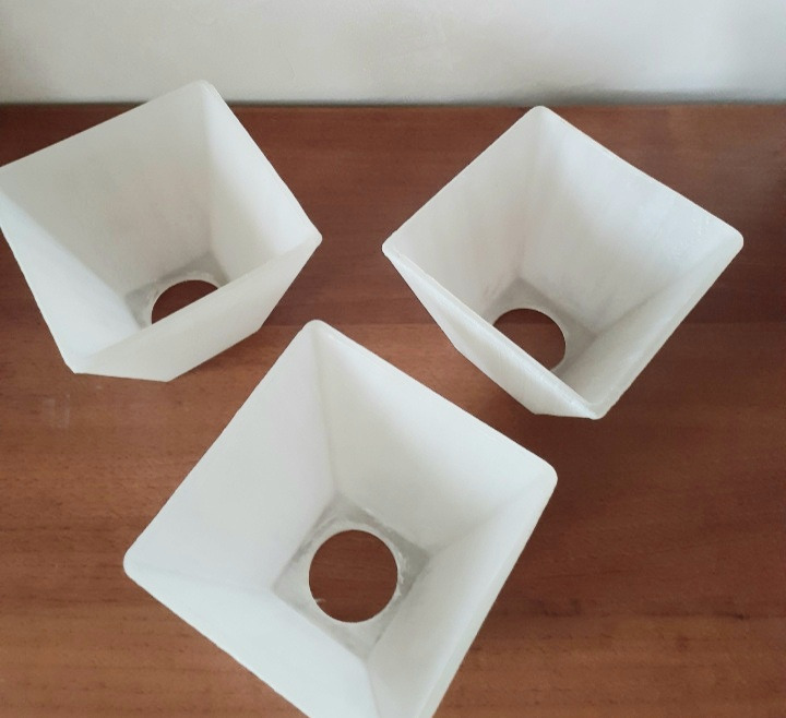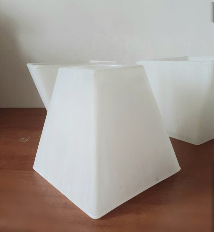 3 стеклянных плафона в форме усеченной пирамиды, матовое муранское стекло. высота 11,5см, по внешнему краю 12×12см по50лей
