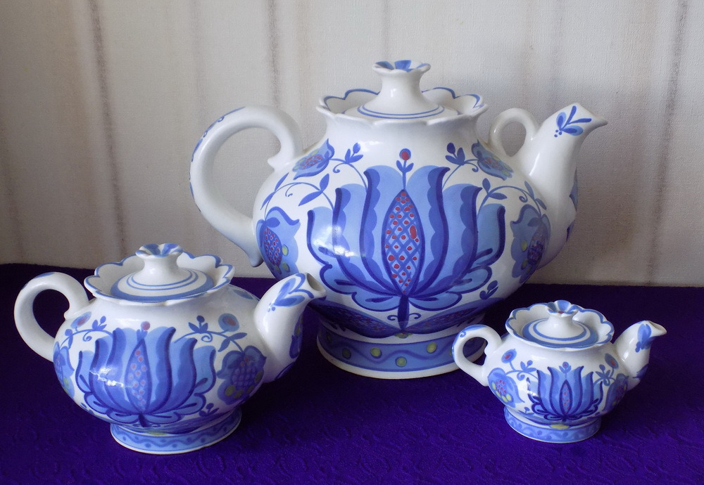 Набор из 3 чайников. Фарфор. СССР. Новый, стоял, как украшение.