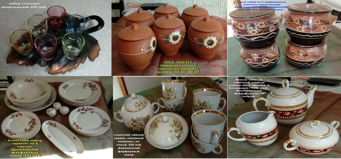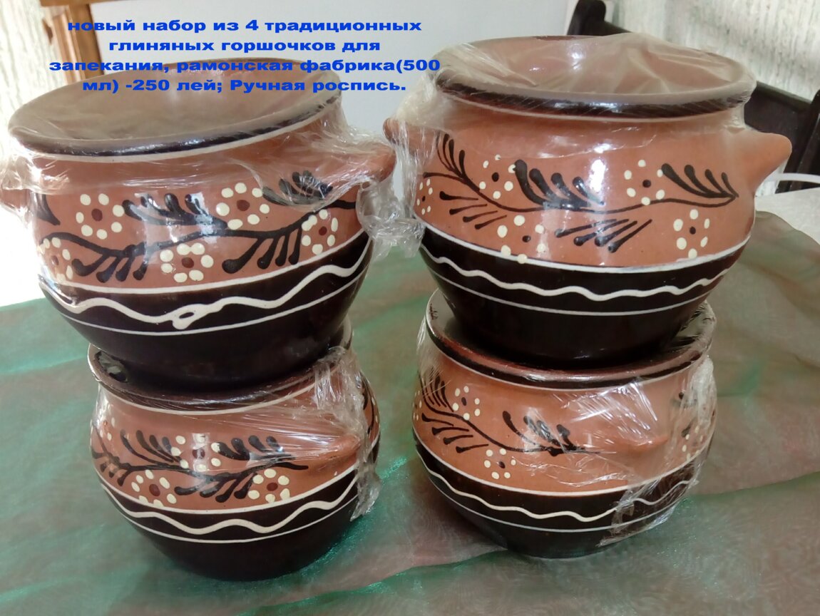 2. Новый набор из 4 традиционных глиняных горшочков для запекания, рамонская фабрика(500 мл) -250 лей; Pучная pоcпись.