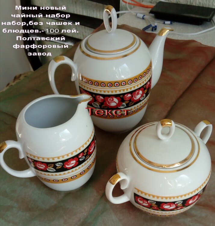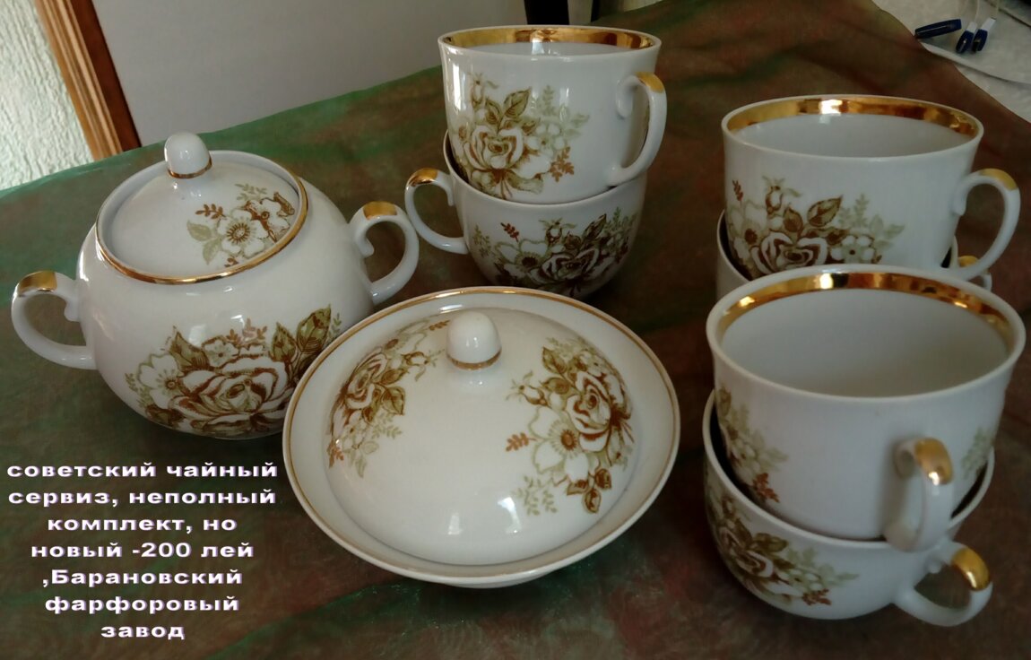 3. Набор чайный неполный, но новый. 6 чашек+сахарница+ масленка- 200 лей. Барановский фарфоровый завод