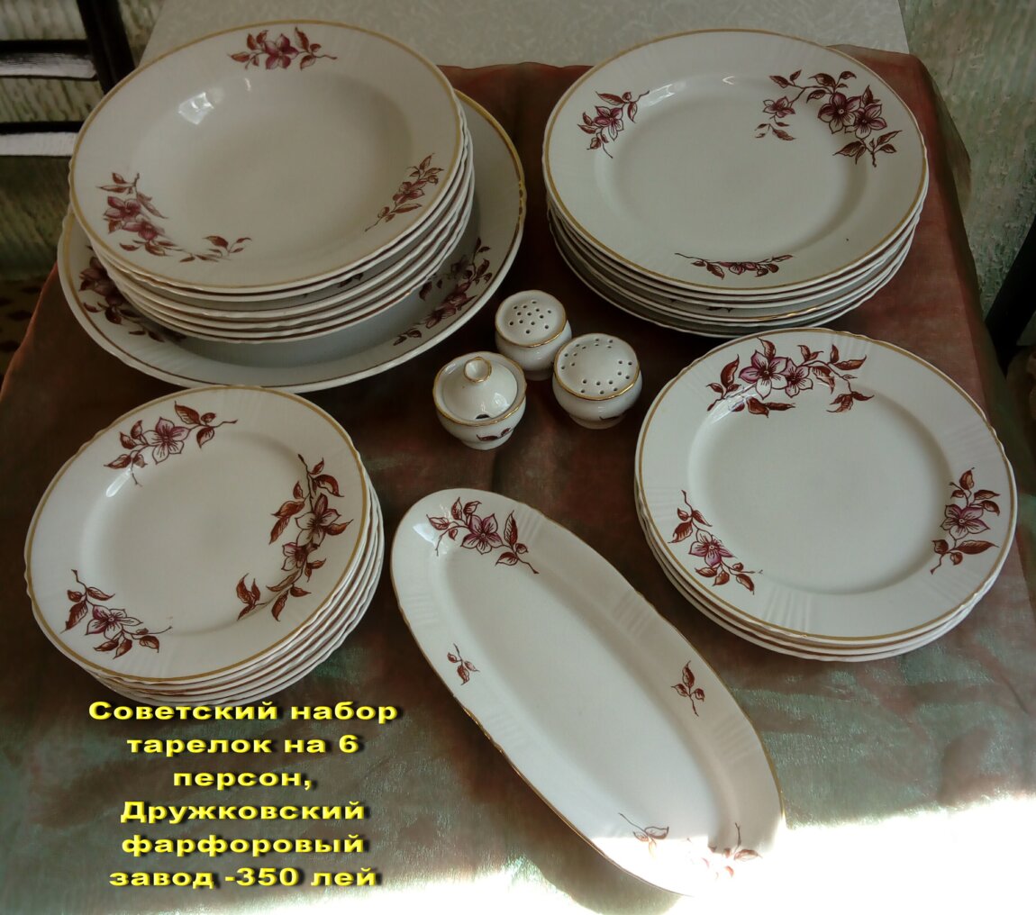 5. Советский набор тарелок на 6 персон, Дружковский фарфоровый завод -350 лей.