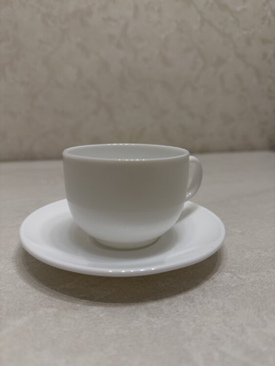 1) белая чашка с блюдцем-6 шт/ 200р.
