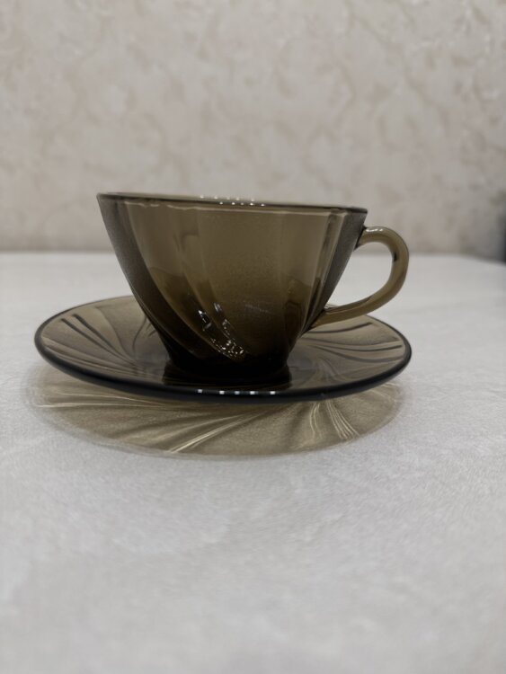 2) коричневая чашка с блюдцем -6 шт/200р.