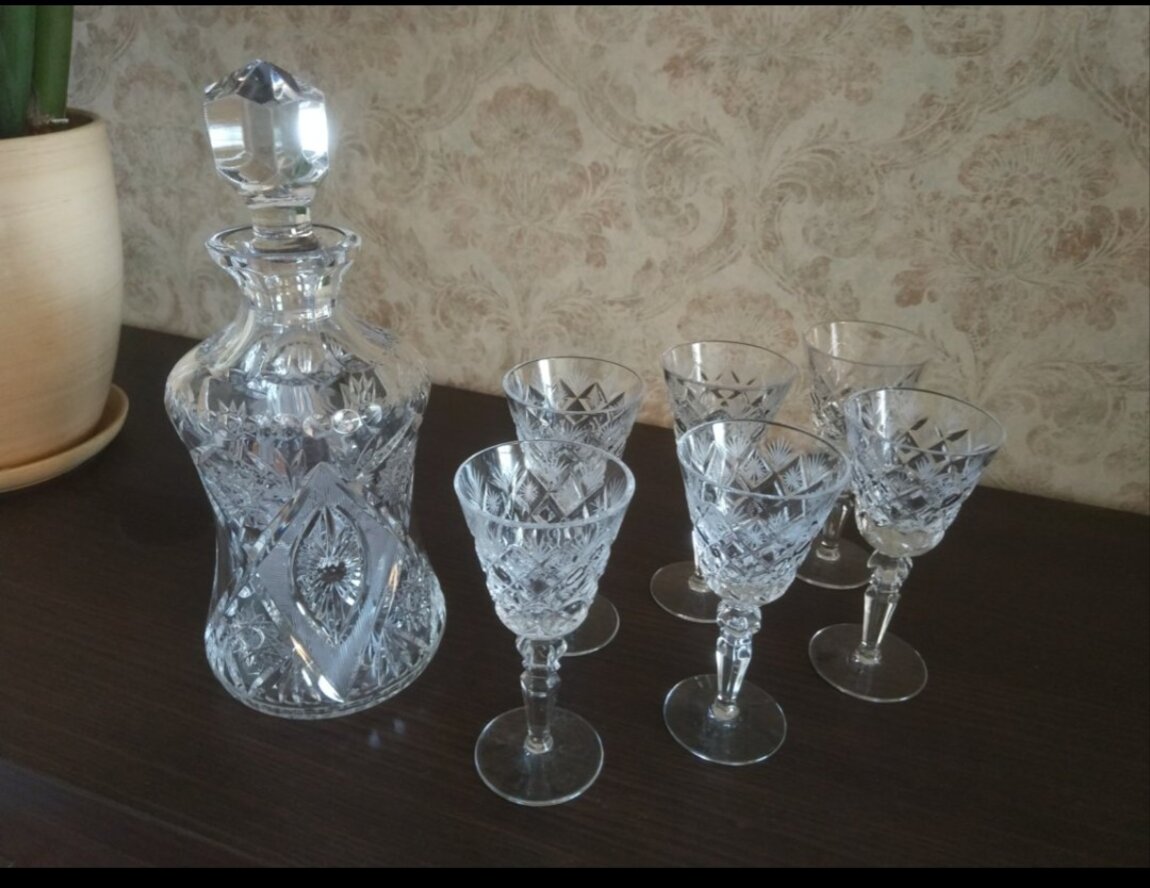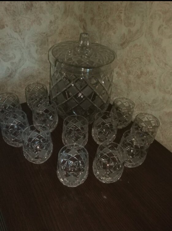 - Набор хрустальный, 12 бокалов и крюшонница - 2000 лей,