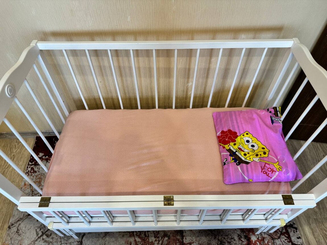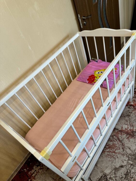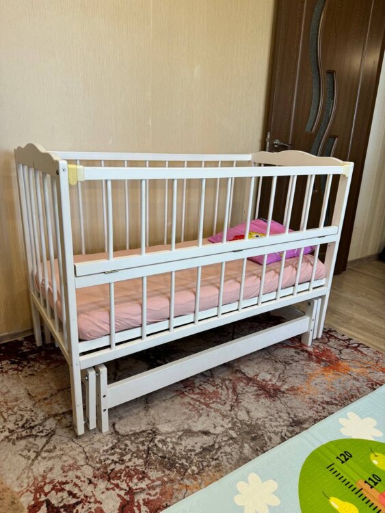 Кроватка деревянная для ребенка, в хорошем состоянии без сколов и трещин, Меняется положение лежака в зависимости от возраста(выше, ниже). Открывающаяся боковая стенка для легкого доступа. Маятник.