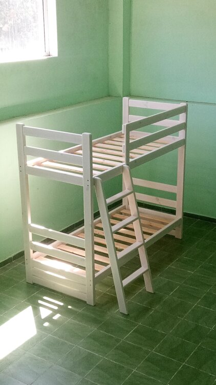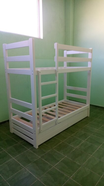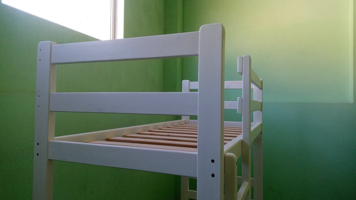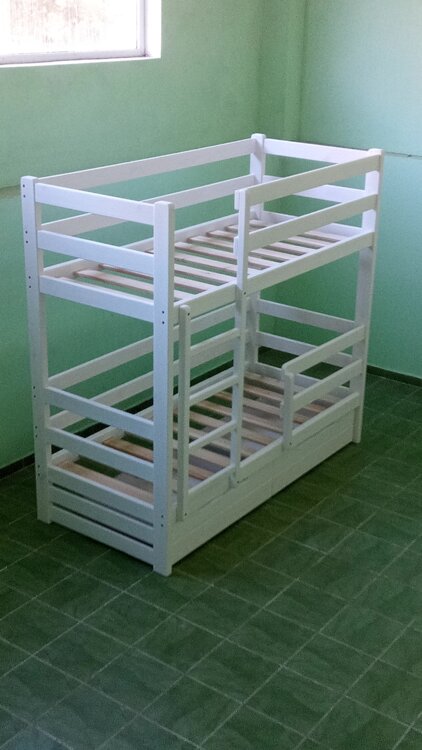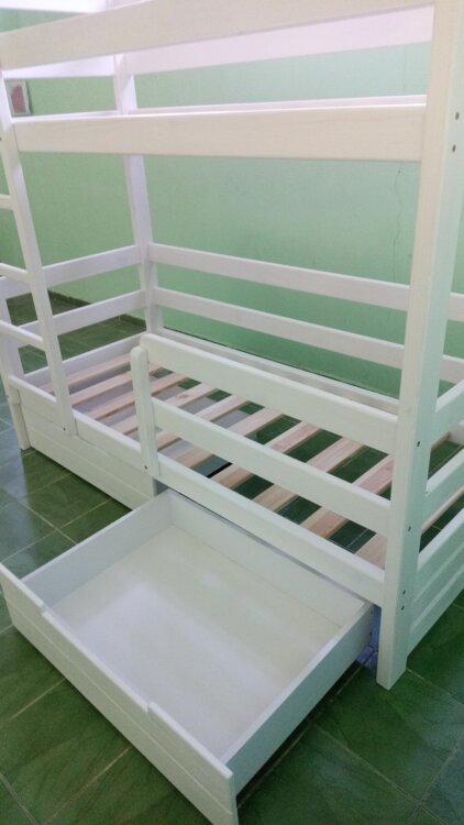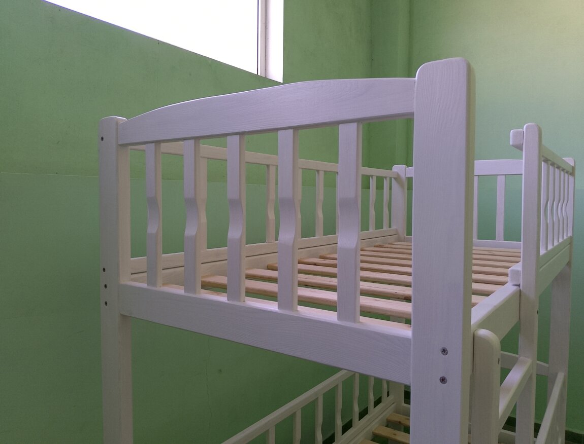Кровать имеет дополнительные бортики сзади, что делает данную кровать более жесткой. Также имеется съемный дополнительный борт нижнего яруса.
