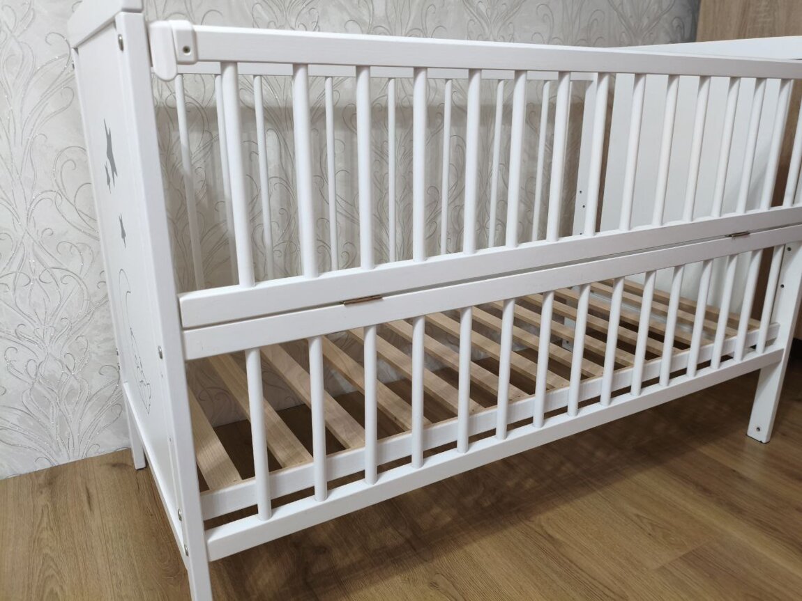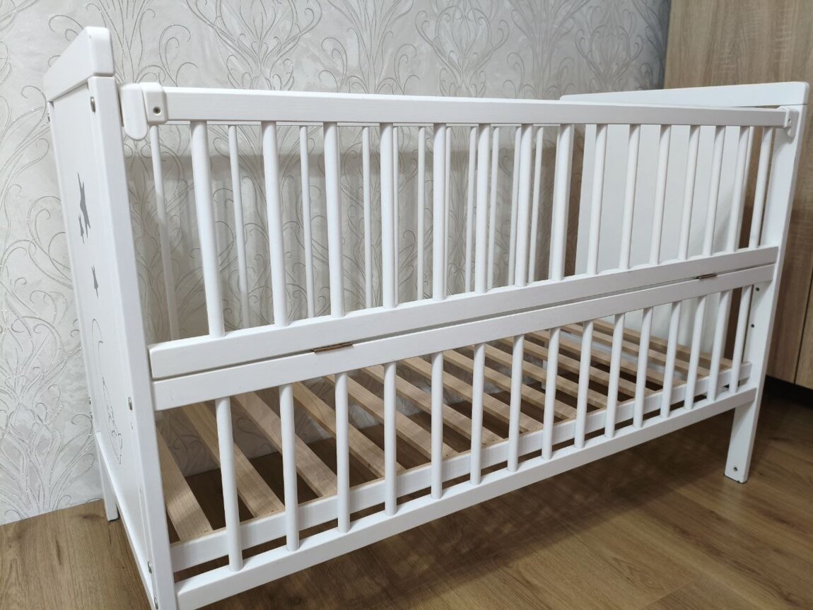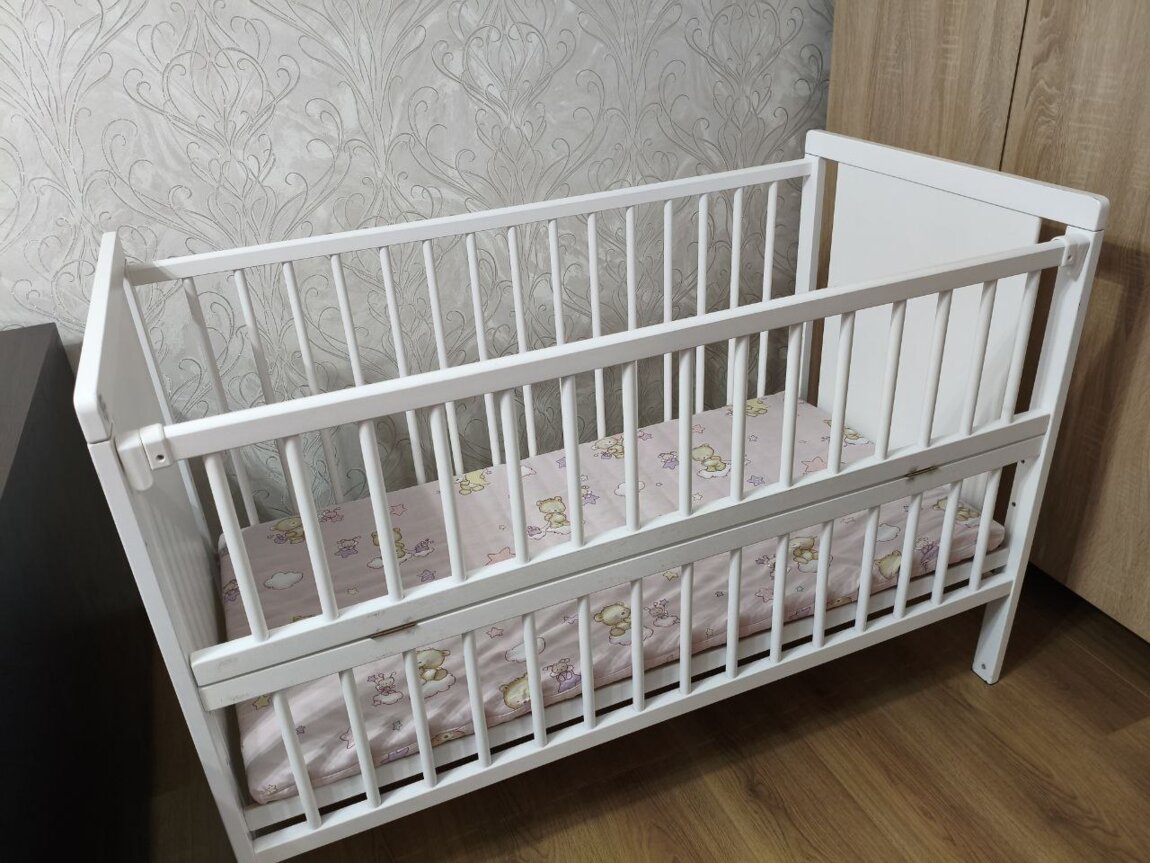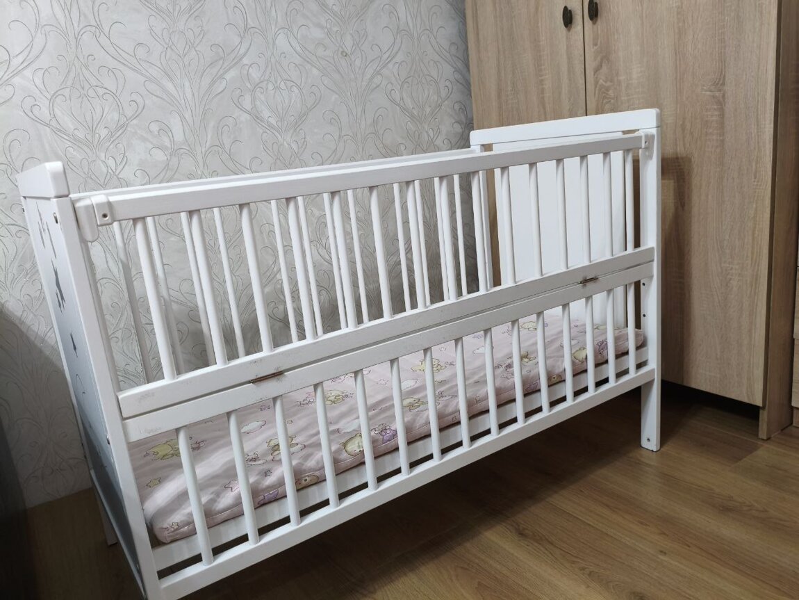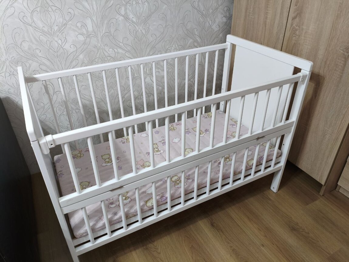 Продам детскую кроватку в идеальном состоянии в комплекте маятник и матрасик кокосовый, после одного ребенка. Возможна доставка по городу. Никогда не была мокрой была в защите матрасик также всегда сухой.