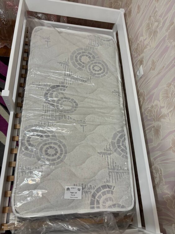 Новая простынь на резинке в подарок (потому что покупалась под матрас).