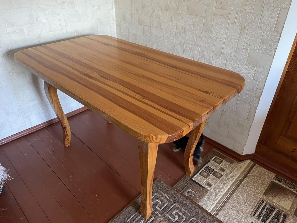 Стол деревянный, размеры: ширина 80см, высота 80см, длина 140см, толщина столешницы 38мм.